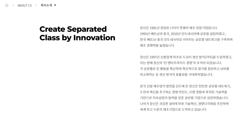 창신inc는 건축자재 및 건설 분야에서 혁신적인 솔루션을 제공하는 기업입니다. 특히, 고품질의 건축자재 생산과 첨단 건설 기술을 통해 업계를 선도하고 있습니다. 지속 가능한 성장을 추구하며 친환경적인 건축 솔루션 개발에도 적극적으로 투자하고 있습니다. 창신inc는 고객 만족을 최우선으로 생각하며, 끊임없는 기술 혁신과 품질 개선을 통해 고객의 신뢰를 얻고 있습니다. 또한, 임직원들의 역량 강화를 위한 다양한 교육 프로그램을 운영하며, 함께 성장하는 기업 문화를 만들어가고 있습니다.