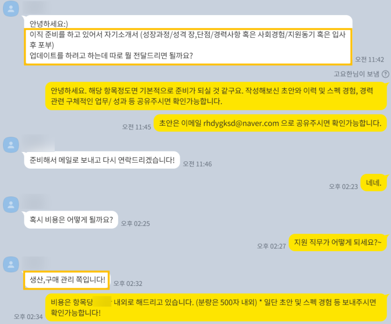 - 자소서 첨삭: 문장 표현, 내용 구성, 직무 연관성 강화