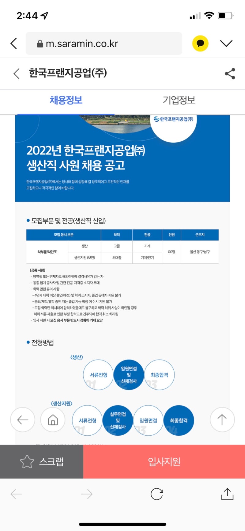한국프랜지공업 생산직, 어떤 일을 할까요?