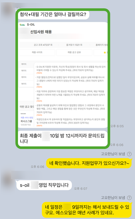 합격률 폭발! 에스오일 영업 자소서 첨삭 & 대필 성공 후기