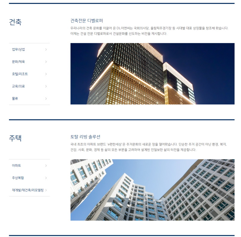 • ✔ 사업 분야: 주택(e편한세상), 건축, 토목, 플랜트(석유화학, 발전), 신사업(모듈러, 친환경 솔루션 등)